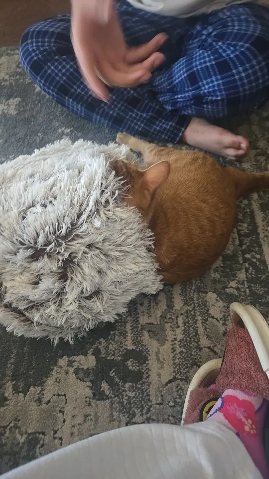 This round plush cat and dog bed provides a safe, warm, and cozy space that reduces anxiety while supporting better sleep. A must-have pet accessory for Whisker House customers who want the best for their furry companions.